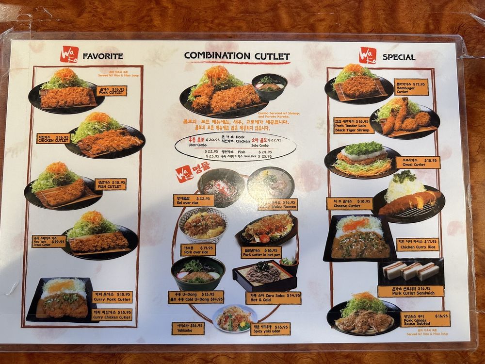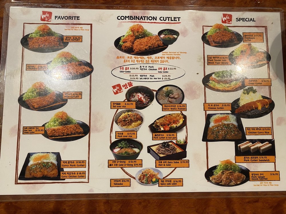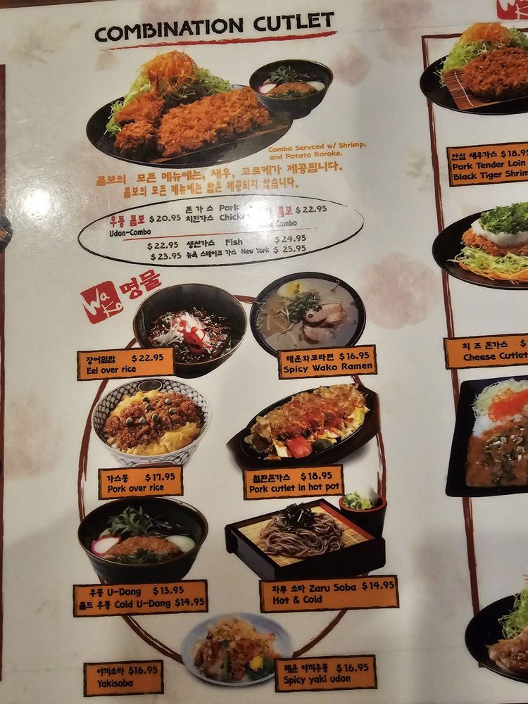 Introducing Wako Donkatsu, a Korean-Japanese fusion spot in Los Angeles. Known for its generous portions and combo specials, this restaurant offers a variety of katsu dishes that are perfectly fried and crispy. The buttery potato croquette, sesame seeds for grinding, and flavorful sauces make each bite a delight. Customers praise the attentive and friendly service, spacious seating, and ample parking. The menu includes options like pork katsu with curry, shrimp katsu, and udon combos. With positive reviews highlighting the quality of food and service, Wako Donkatsu is a solid choice for a satisfying meal in Ktown. Don't miss the chance to try their delicious dishes and experience a hidden gem away from the chaos of the city.